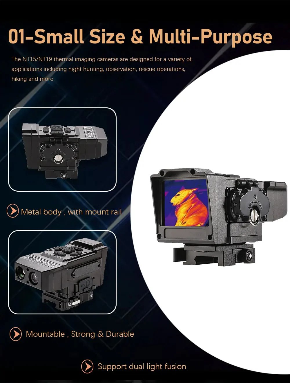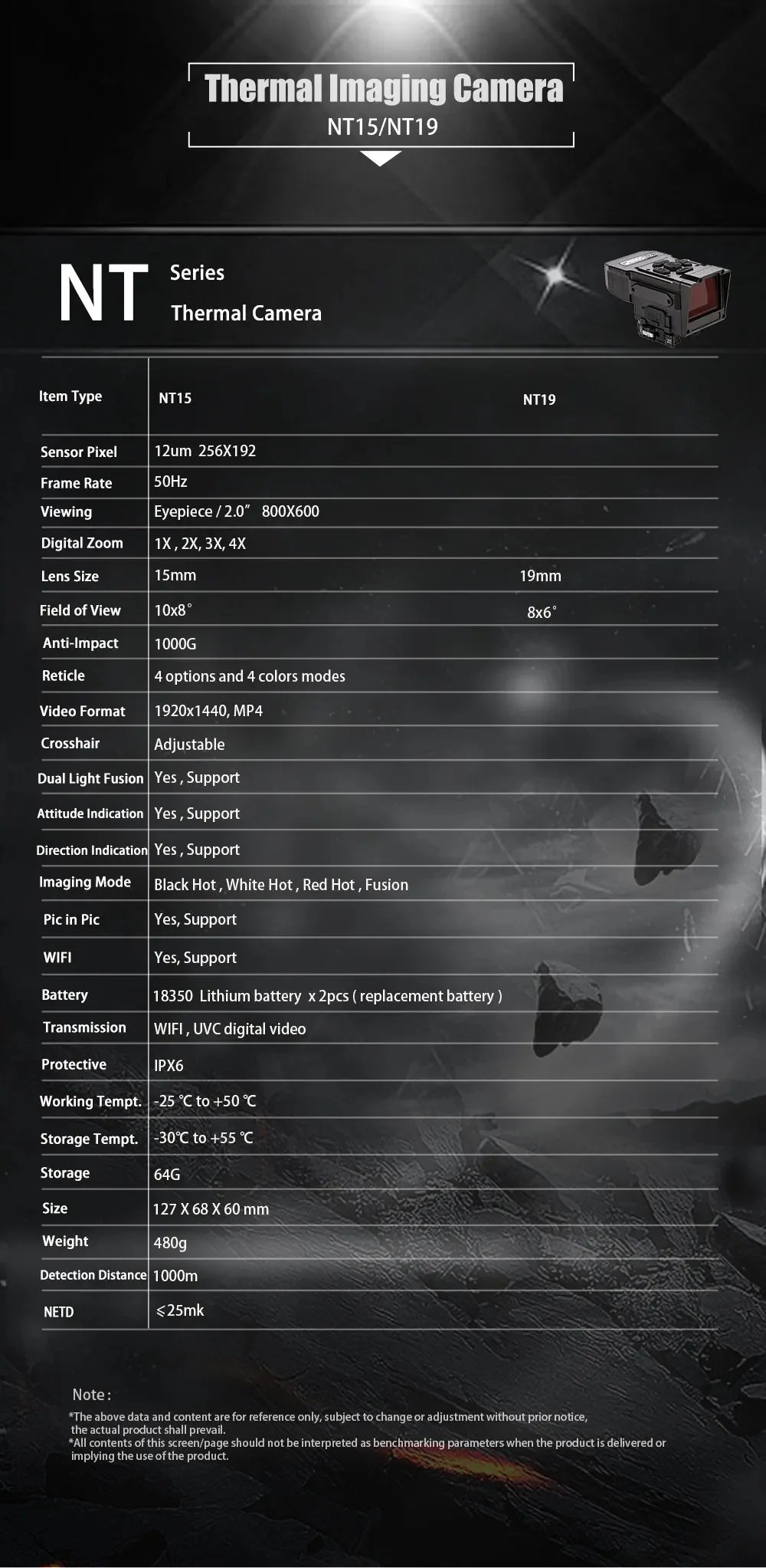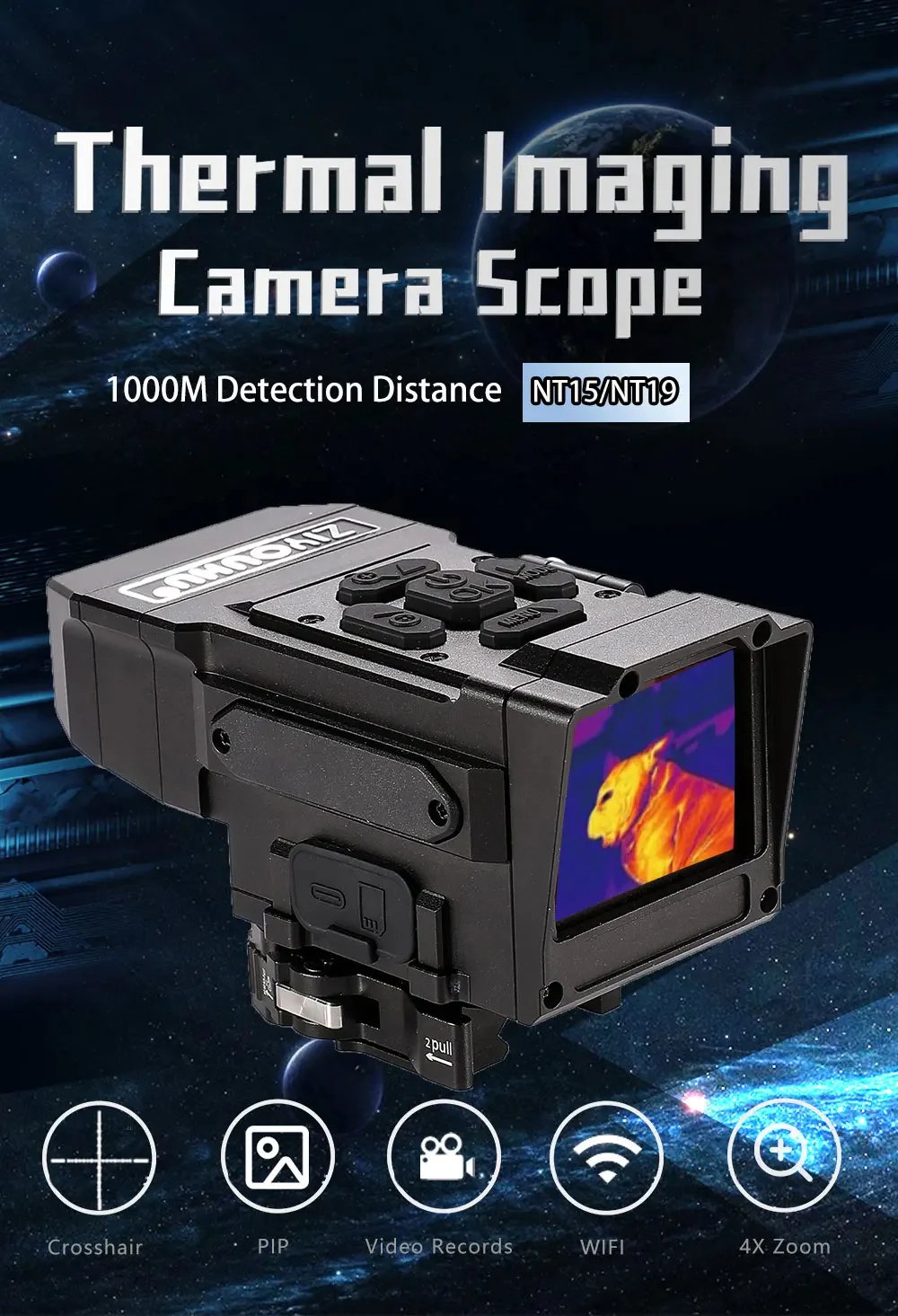 NT15 Dual Light Fusion Thermal Imaging Scope Digital Night Vision Camcorder Crosshair for Hunting 1000m Hot Detection Monocular