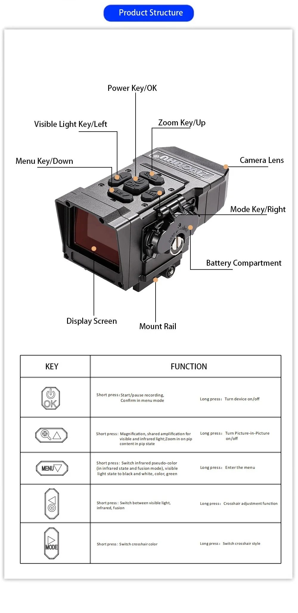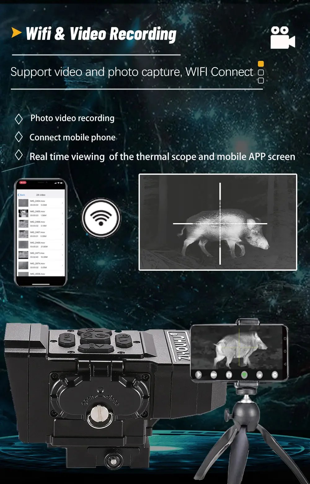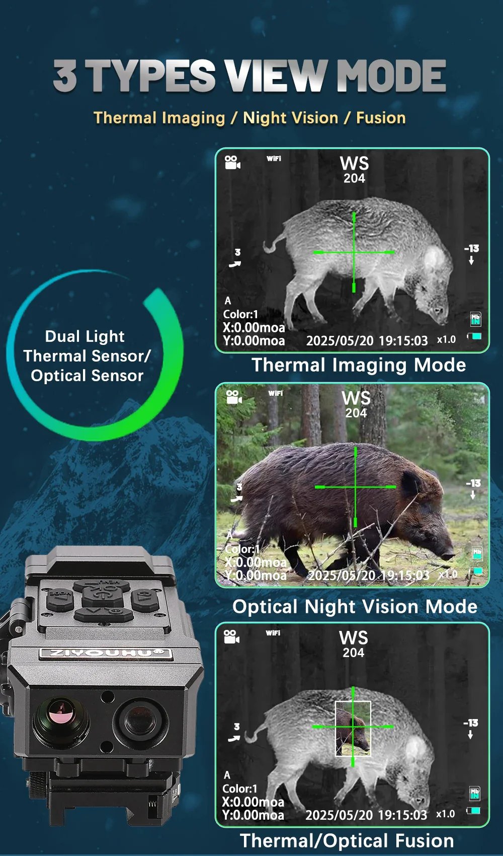 NT15 Dual Light Fusion Thermal Imaging Scope Digital Night Vision Camcorder Crosshair for Hunting 1000m Hot Detection Monocular